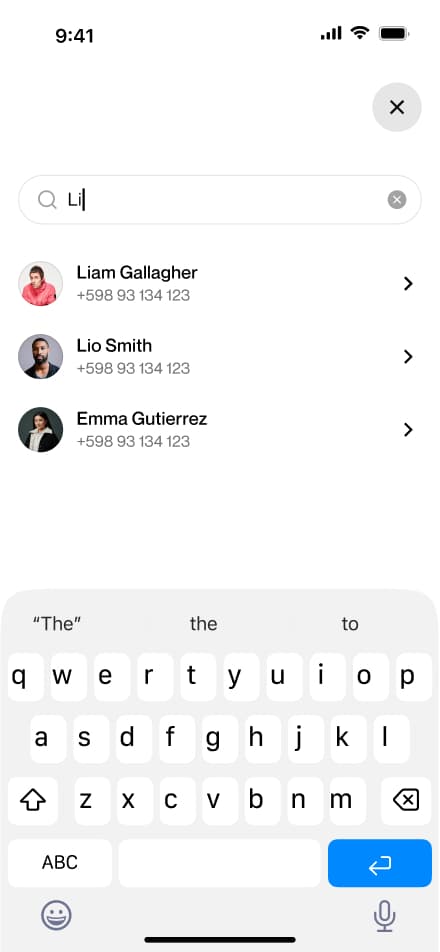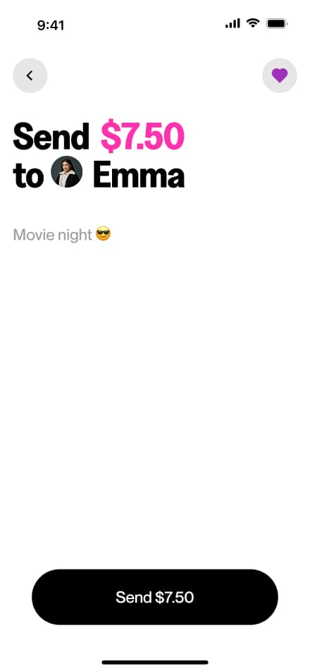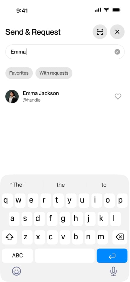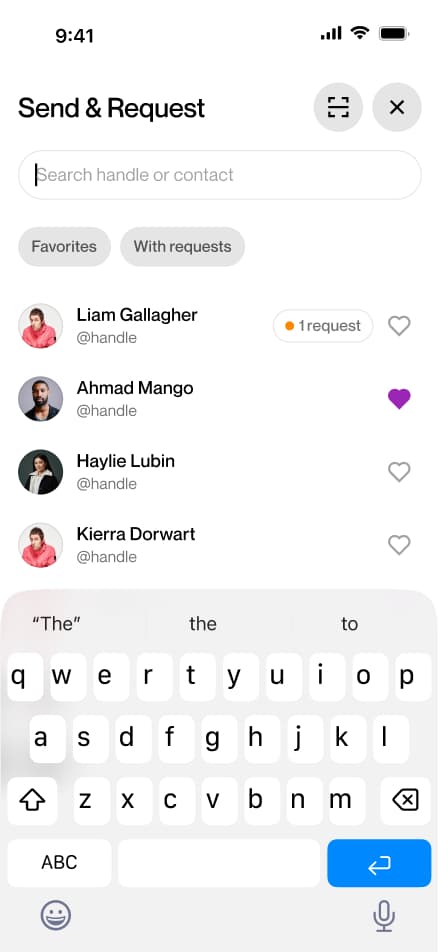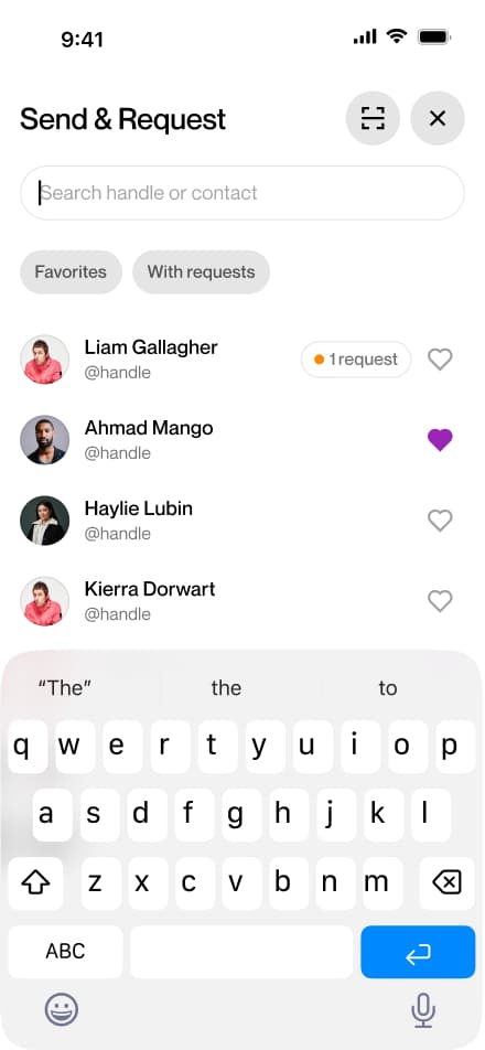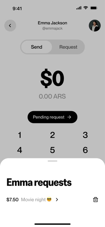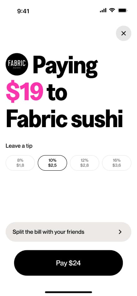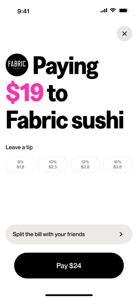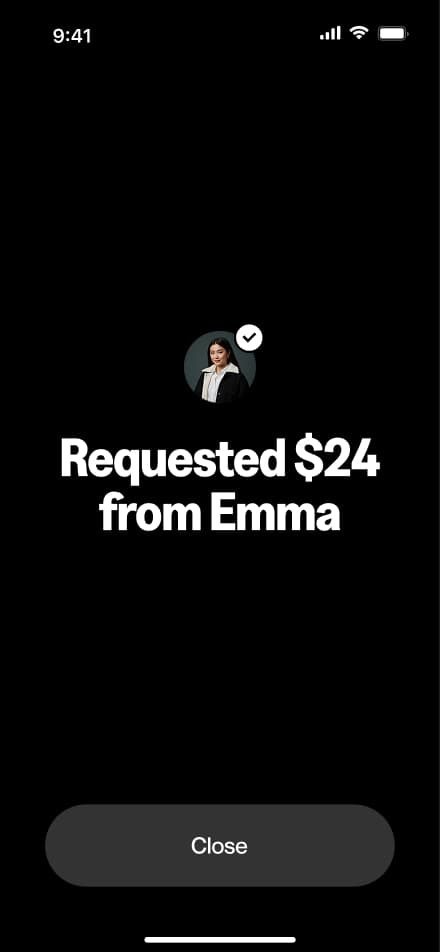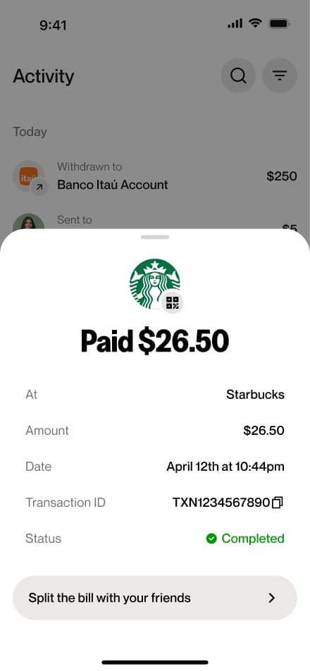 6 screensUsers can split a payment among multiple people from the activity screen opening the relevant payment and initiating a split directly from there.