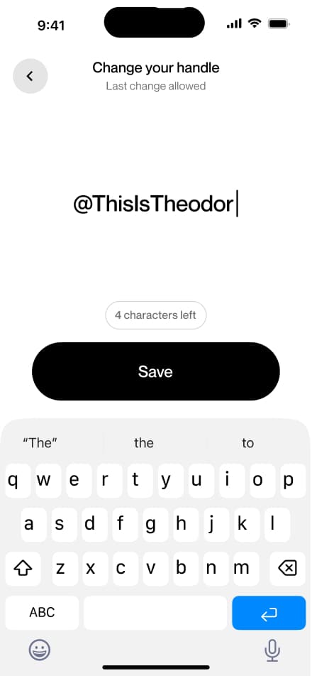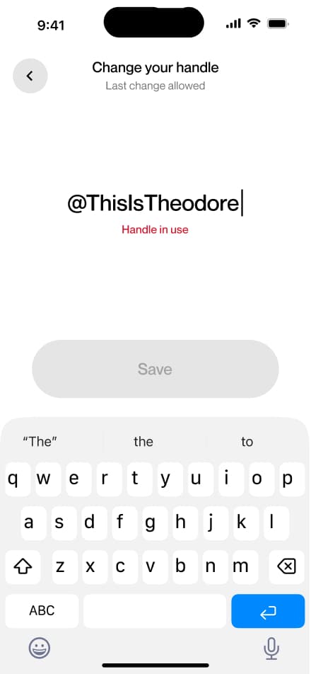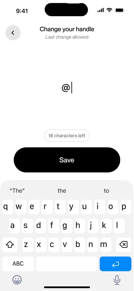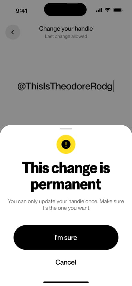 7 screensThe Change Handle flow allows users to update their username directly from the Profile screen. Note that a handle can only be changed once, so users are encouraged to choose carefully before confirming.