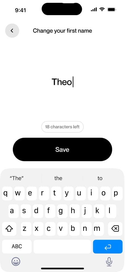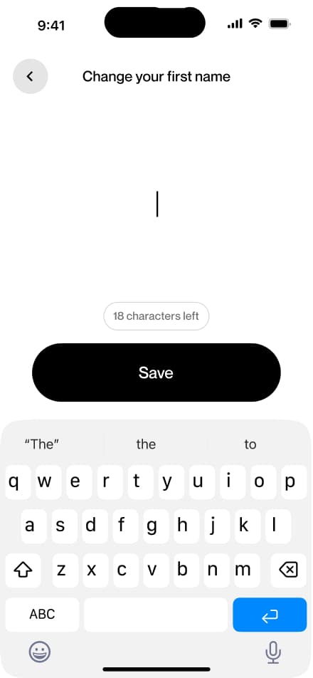 5 screensThe Changing Your Name flow allows users to update their display name directly from the Profile screen.