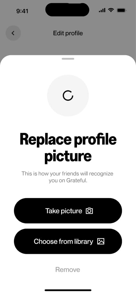 7 screensThe Change Profile Picture flow allows users to update their profile photo directly from the Profile screen.