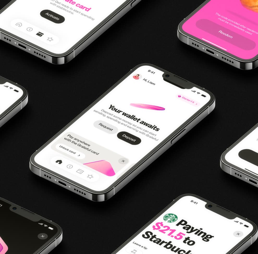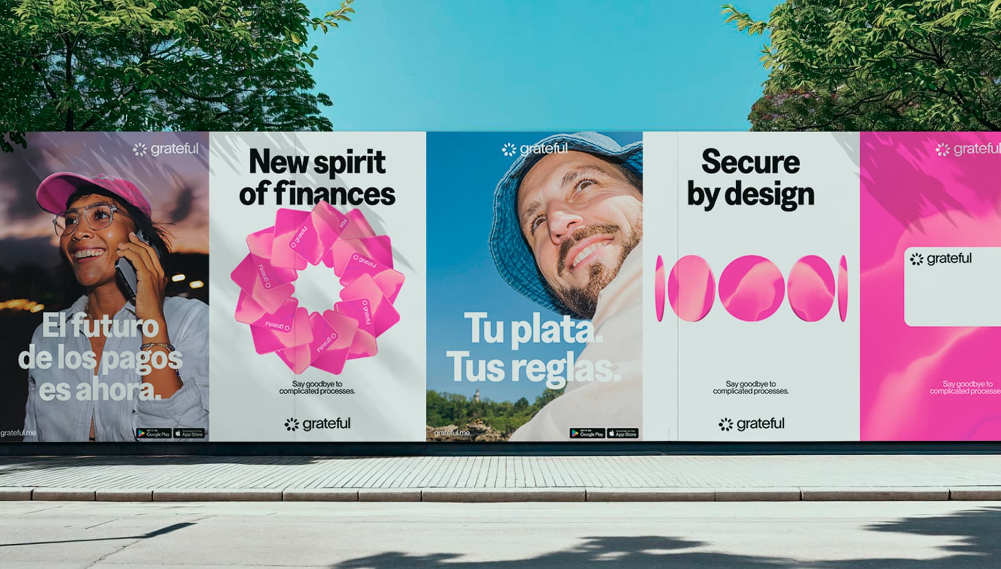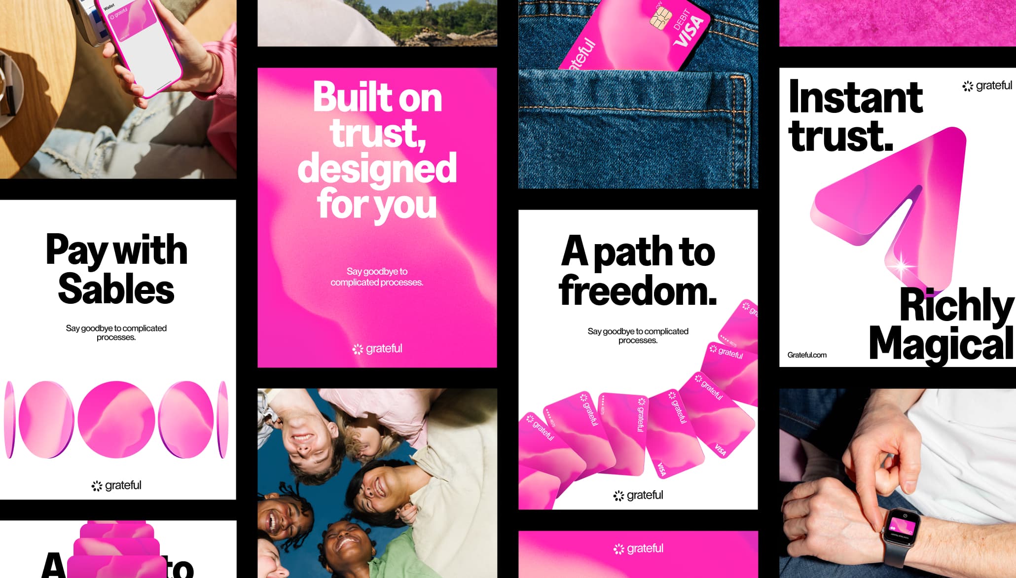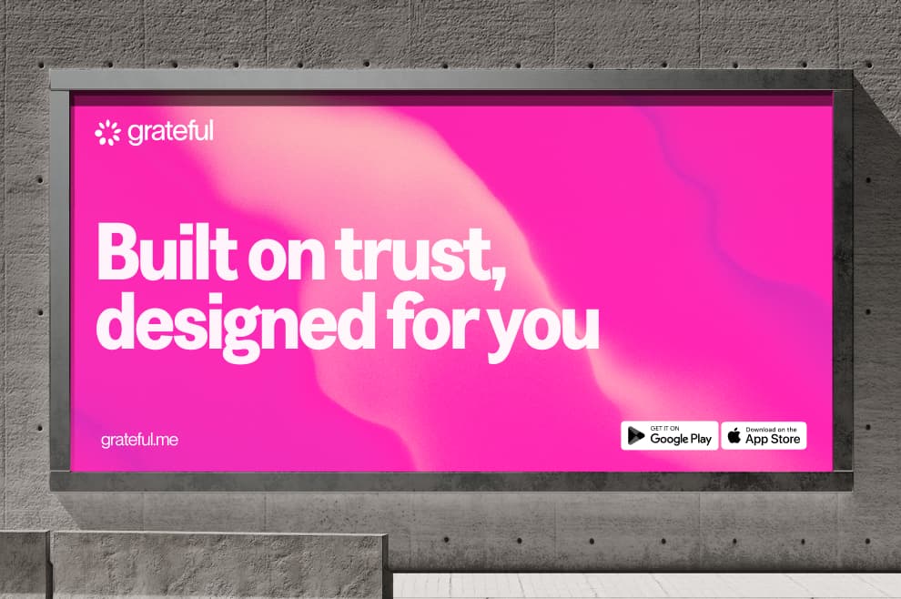 It differentiates Grateful from traditional finance, adding energy, emotion, and a sense of trust across every touchpoint: digital, physical, and experiential. A brand that feels alive.