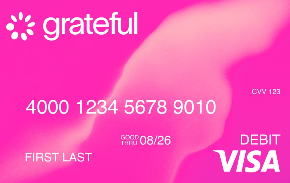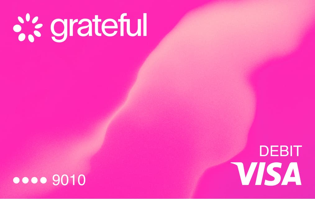 The Grateful card is where the brand becomes tangible. It's the physical and digital object that users carry with them, and it had to feel as distinct and intentional as the rest of the system.