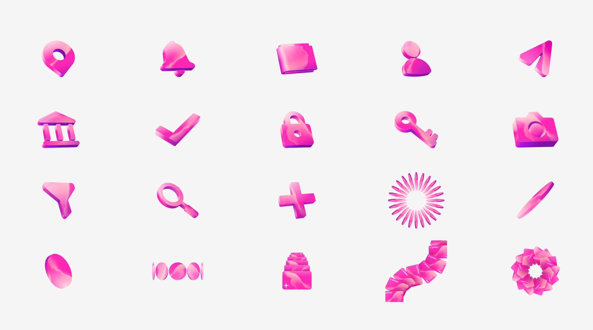 The gradient adds another layer to the brand's visual depth. Soft, luminous, and always rooted in Grateful's pink palette, it brings a sense of glow and elevation to the system. Unlike the mesh, which has texture and movement, the gradient is smooth and atmospheric.