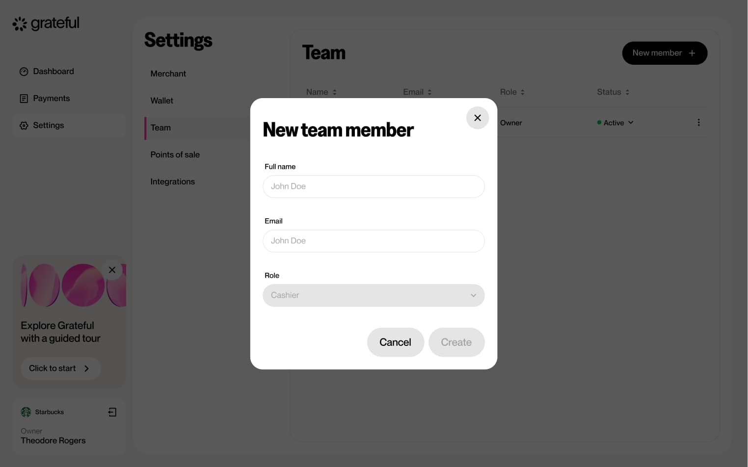 5 screensThe Add Team Member flow allows merchants to invite new members to their dashboard.