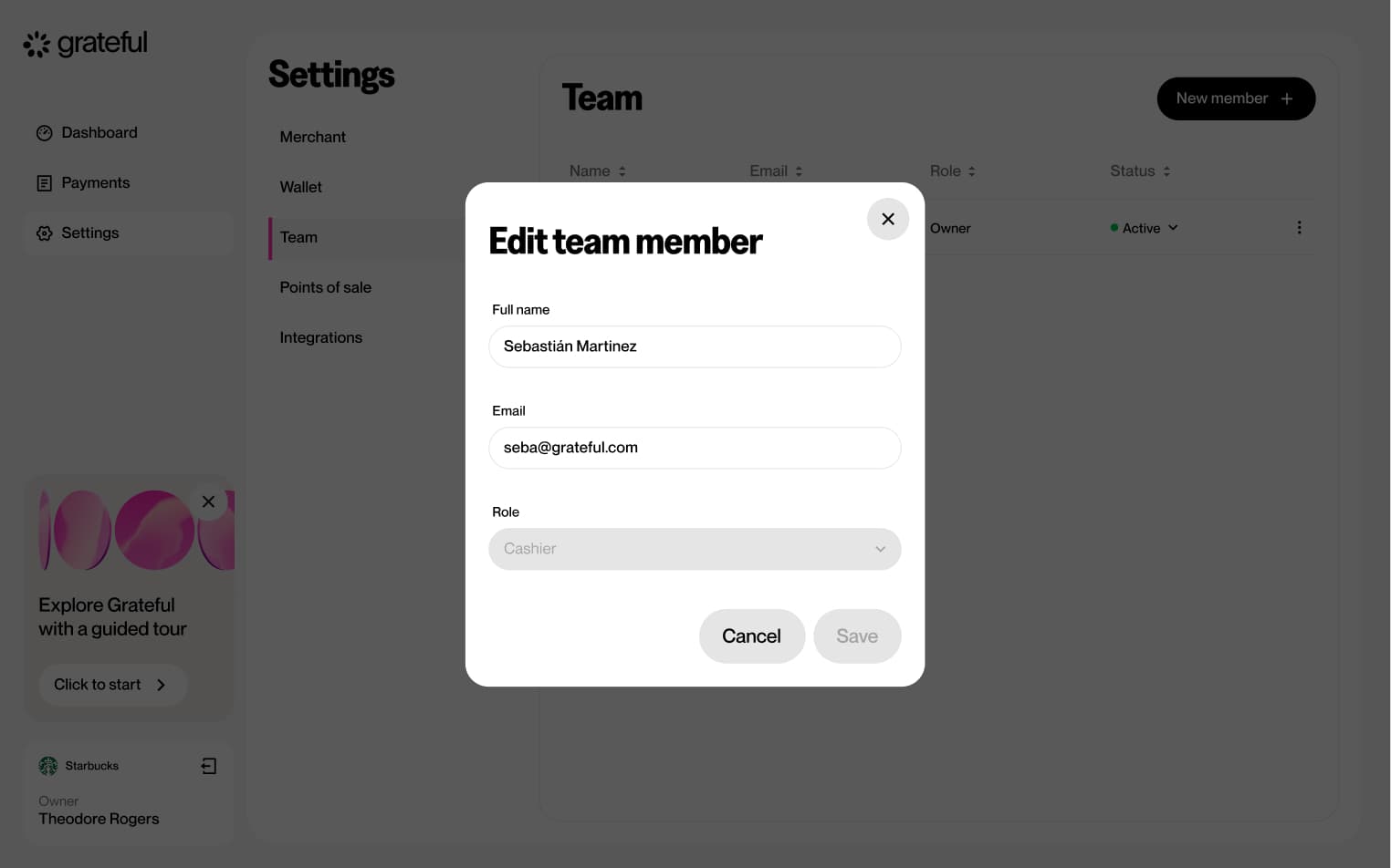 6 screensThe Edit Team Member flow allows merchants to update the details or permissions of an existing team member directly from the Settings screen.